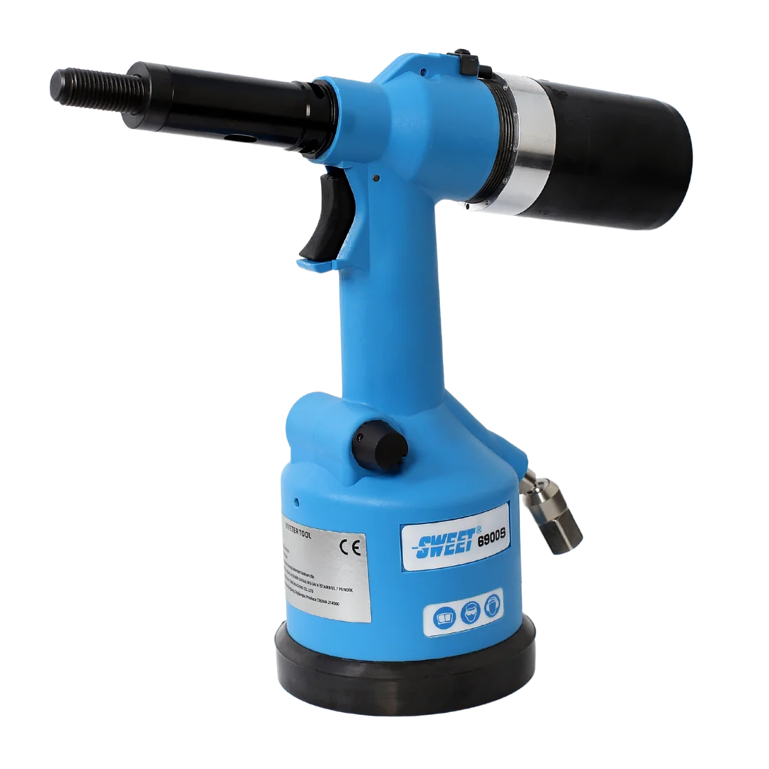 SWEET 6900 S, endüstriyel perçinleme süreçlerinde maksimum performans ve dayanıklılık sunan, profesyonel sınıf bir havalı perçinleme makinesidir. M3’ten M16’ya kadar farklı ölçülerdeki perçin somunlarını alüminyum, çelik ve paslanmaz çelik gibi tüm malzemelerde başarıyla uygular. 21.2 kN üzeri çekme kuvveti ve 7 mm vuruş mesafesi ile güçlü ve güvenli bağlantılar sağlar. 0.5–0.7 MPa arası çalışma basıncı ve 4.6 litre hava tüketimiyle verimli çalışır.